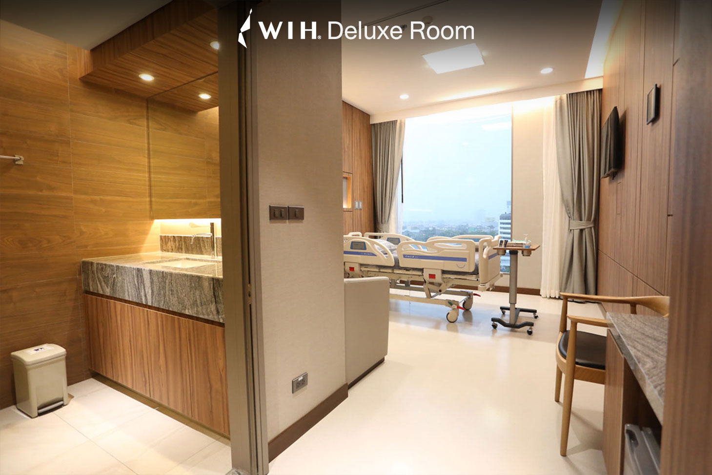 The Deluxe Room at WIH International Hospital is thoughtfully designed to offer comfort, privacy, and a calming environment throughout your recovery.